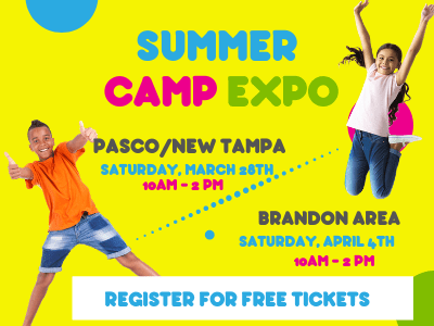 (Save the date: Pasco/New Tampa Summer Camp Expo: March 28th & Brandon Area Summer Camp Expo: April 4th) Register here.Â