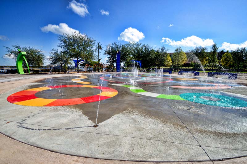 The scenic Sims Park by Orange Lake has a spacious splash pad that’s open daily from 9:00 AM until 30 minutes before sunset. There are also nearby pavilions with grills and playgrounds to complete the summer fun for the whole family.