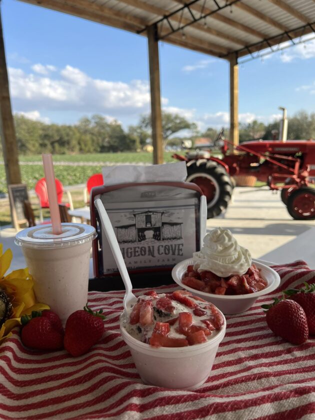 Before you experience U-pick strawberries, make sure to get some famous strawberry shakes and shortcakes.