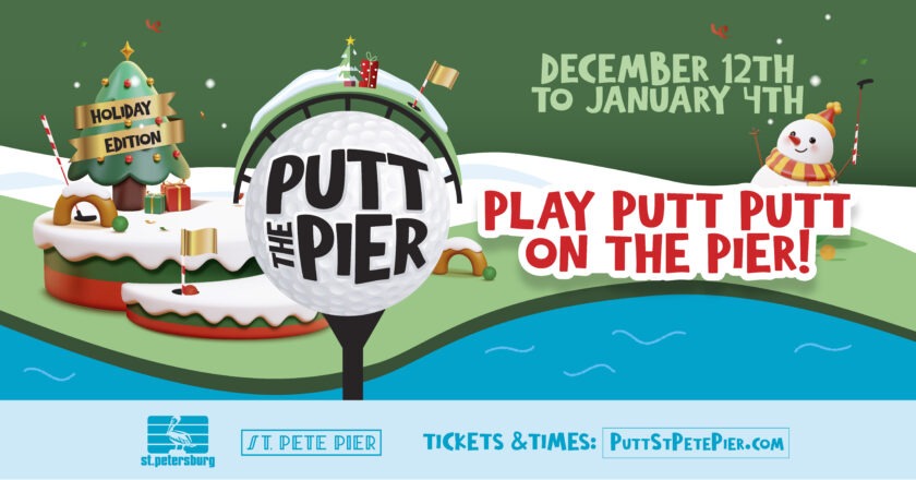 Putt the Pier returns as a joyful waterfront mini-golf experience infused with holiday spirit. This custom 18-hole course winds along the St. Pete Pier with cheerful Christmas obstacles, sparkling décor, twinkling lights, and themed challenges at every turn. From putting through giant ornaments and candy-cane tunnels to navigating jholiday scenes and playful holiday characters, each hole brings a dose of festive fun.