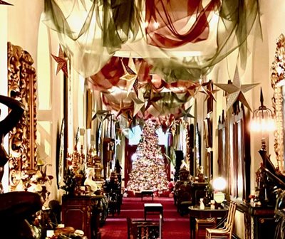 Delight in the display of antique ornaments and Santa figurines. View authentic goosefeather trees and period fashions. Decorations include visitor favorites from years past as well as new marvels that are sure to amaze.