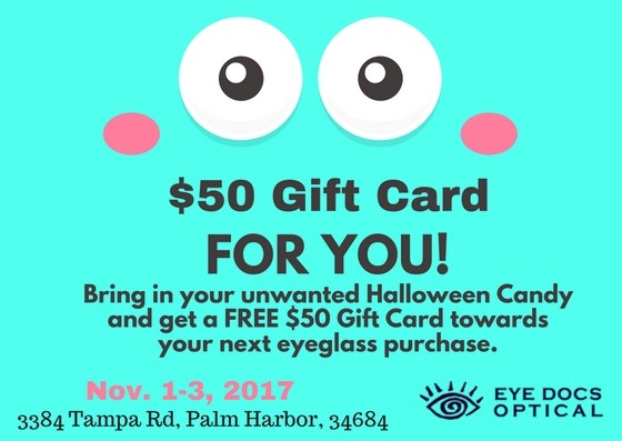 Nov. 1-3, 2017Â from 9 am-5pm stop by and donate your unwanted candy and receive a $50 Eye Docs Optical Gift Card to be used towards your next eyeglass purchase. All candy will be donated to U.S. troops.